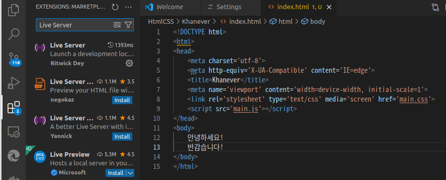 - 브라우저에서 보기: Live Server가 브라우저에서 자동으로 열리고, 파일 변경 시 자동으로 새로고침됩니다.