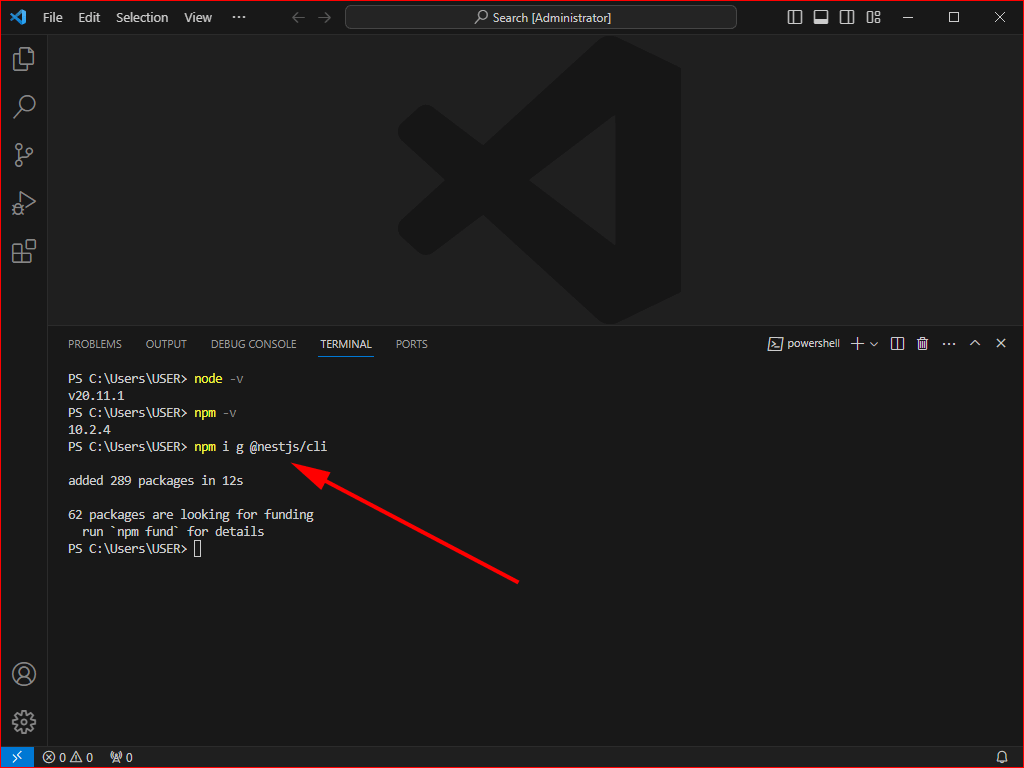 npm i -g @nestjs/cli