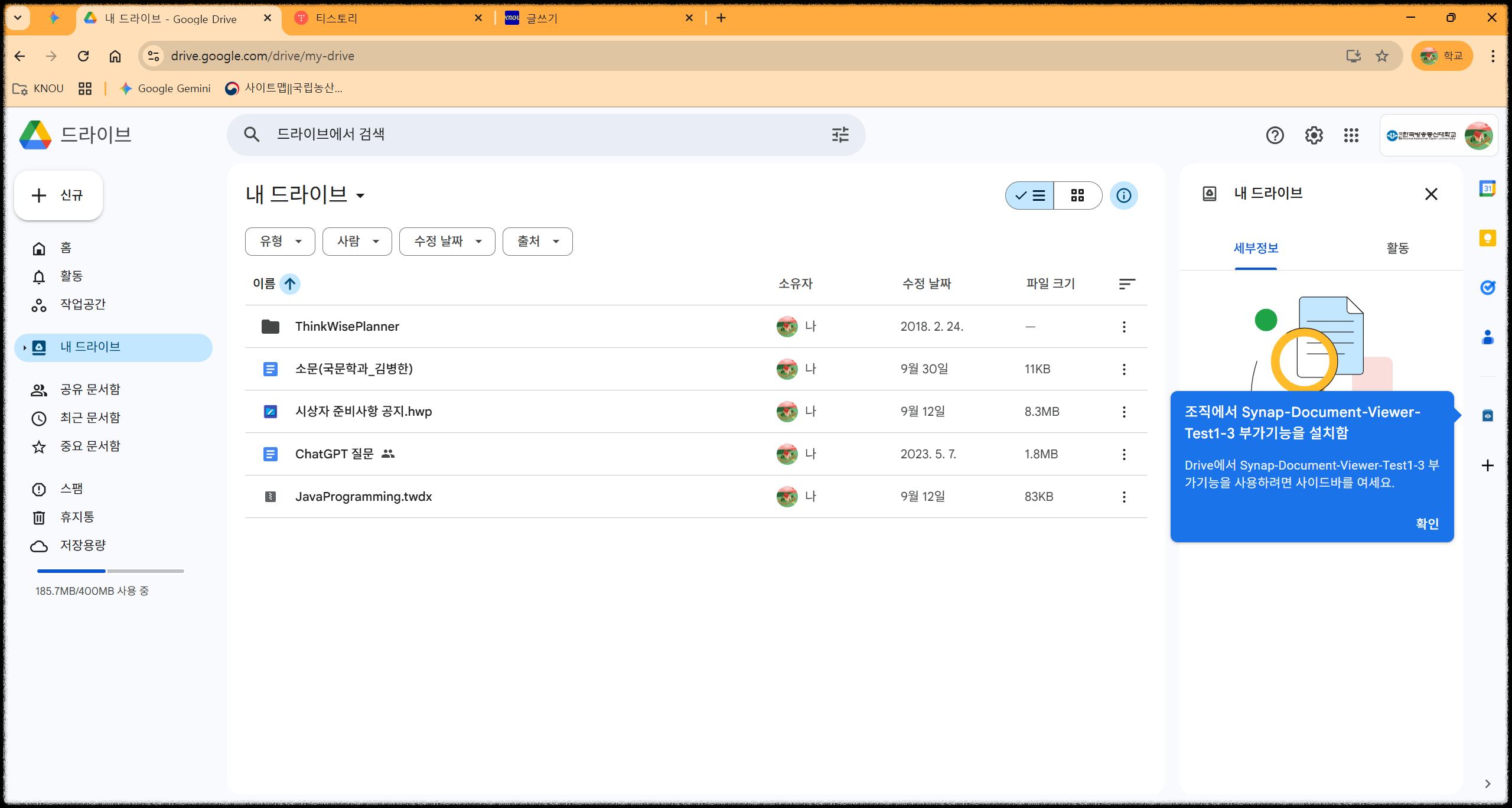 과제 파일 몇 개, 사진 몇 장 올렸을 뿐인데 '저장 공간이 부족합니다'라는 경고 메시지를 받아보신 적 없으신가요? 확인해 보니 총용량이 15GB가 아니라 1GB, 심지어 400MB로 되어 있어 당황하셨을 수 있습니다.